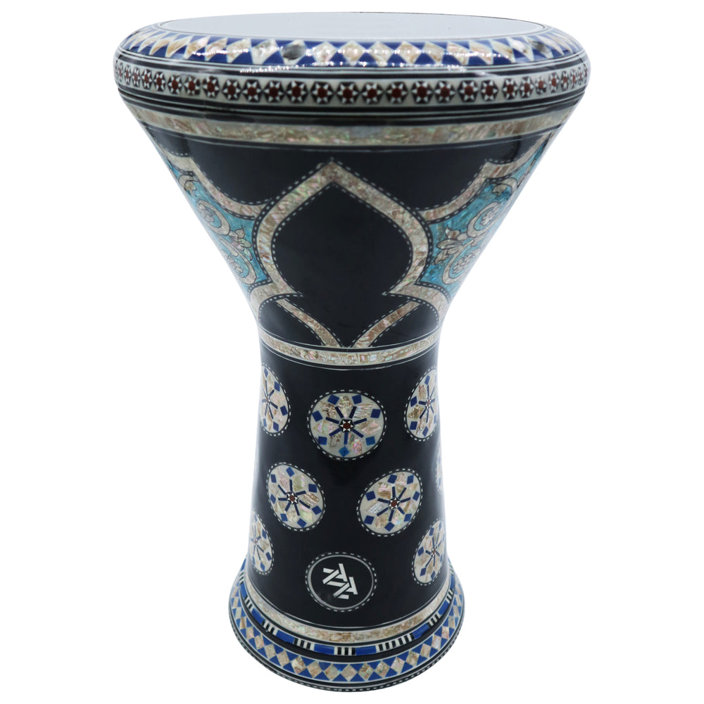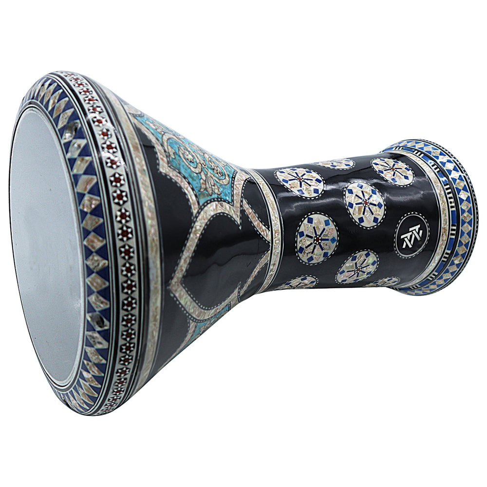 • This Drum is a Top-Quality Drum with Shiny Egyptian Shells Decorations. An amazing new 17.5" Darbuka, which comes with extra clear synthetic skin and a premium case.
