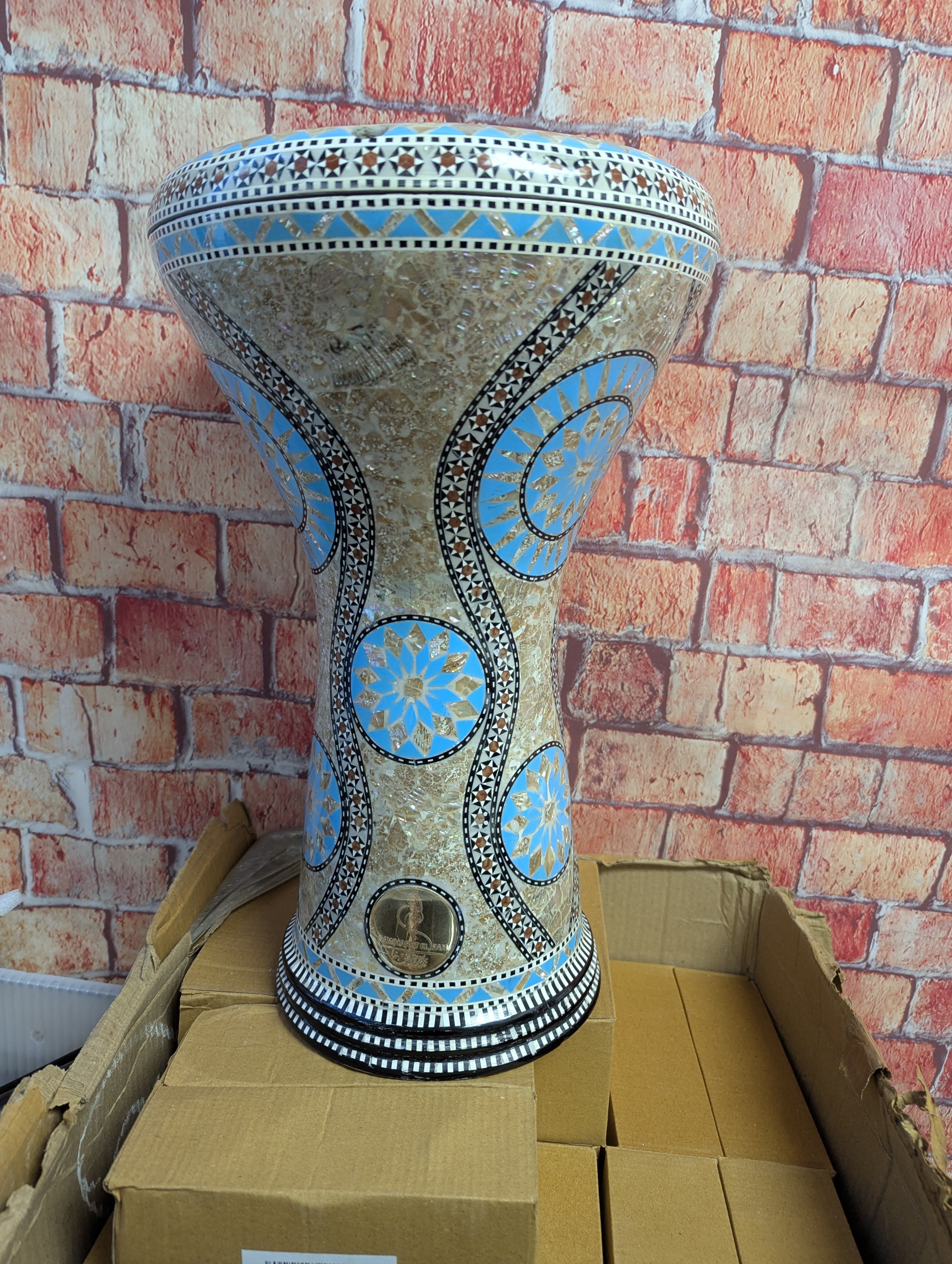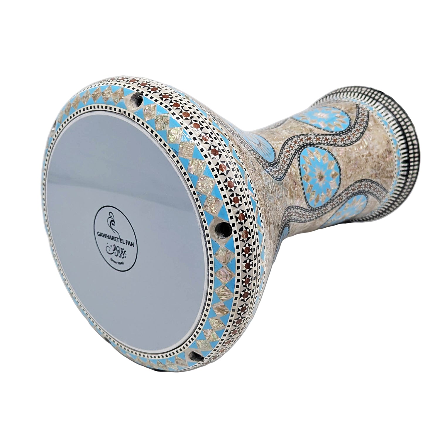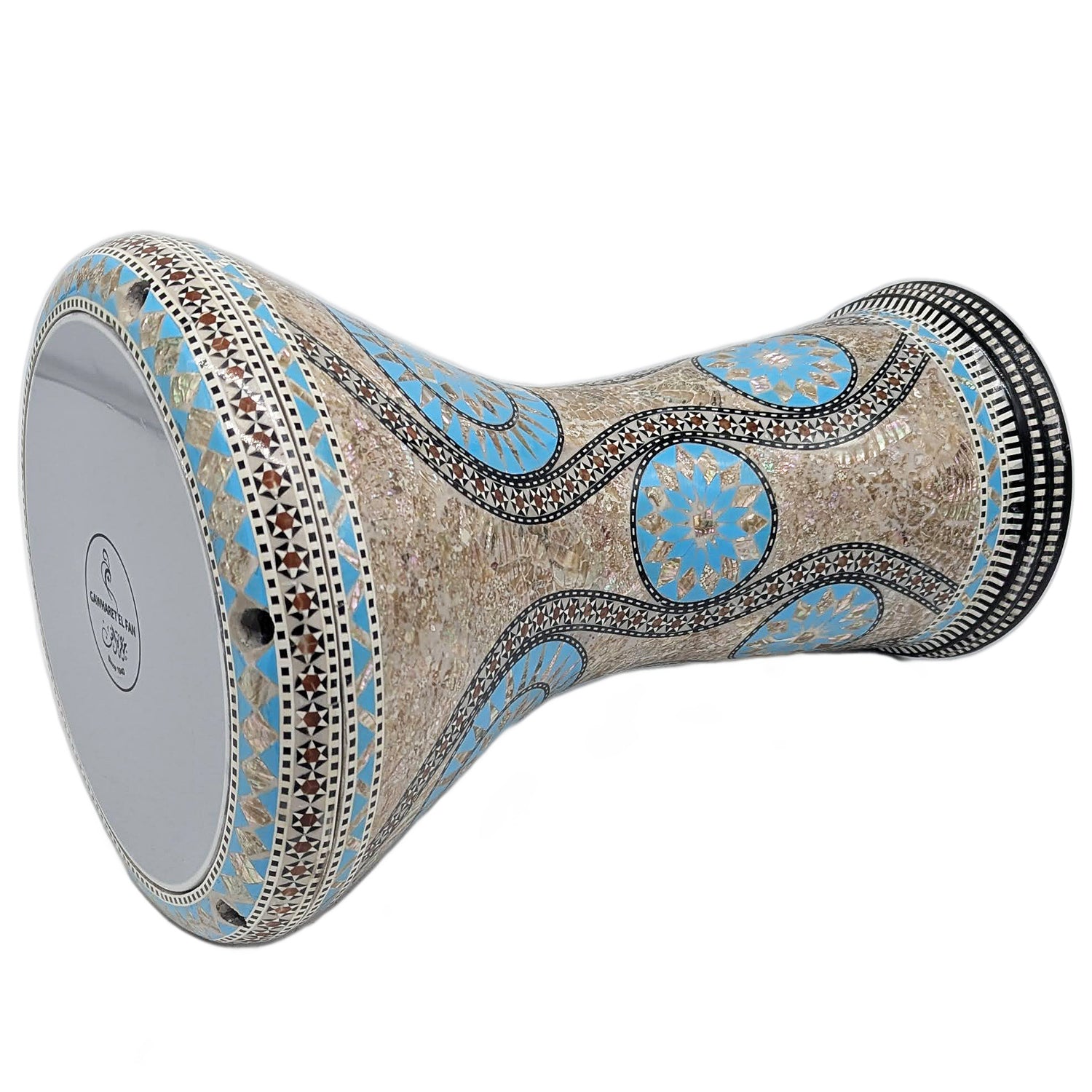 Bring home a darbuka that looks as incredible as it sounds — a true Gawharet El Fan masterpiece.