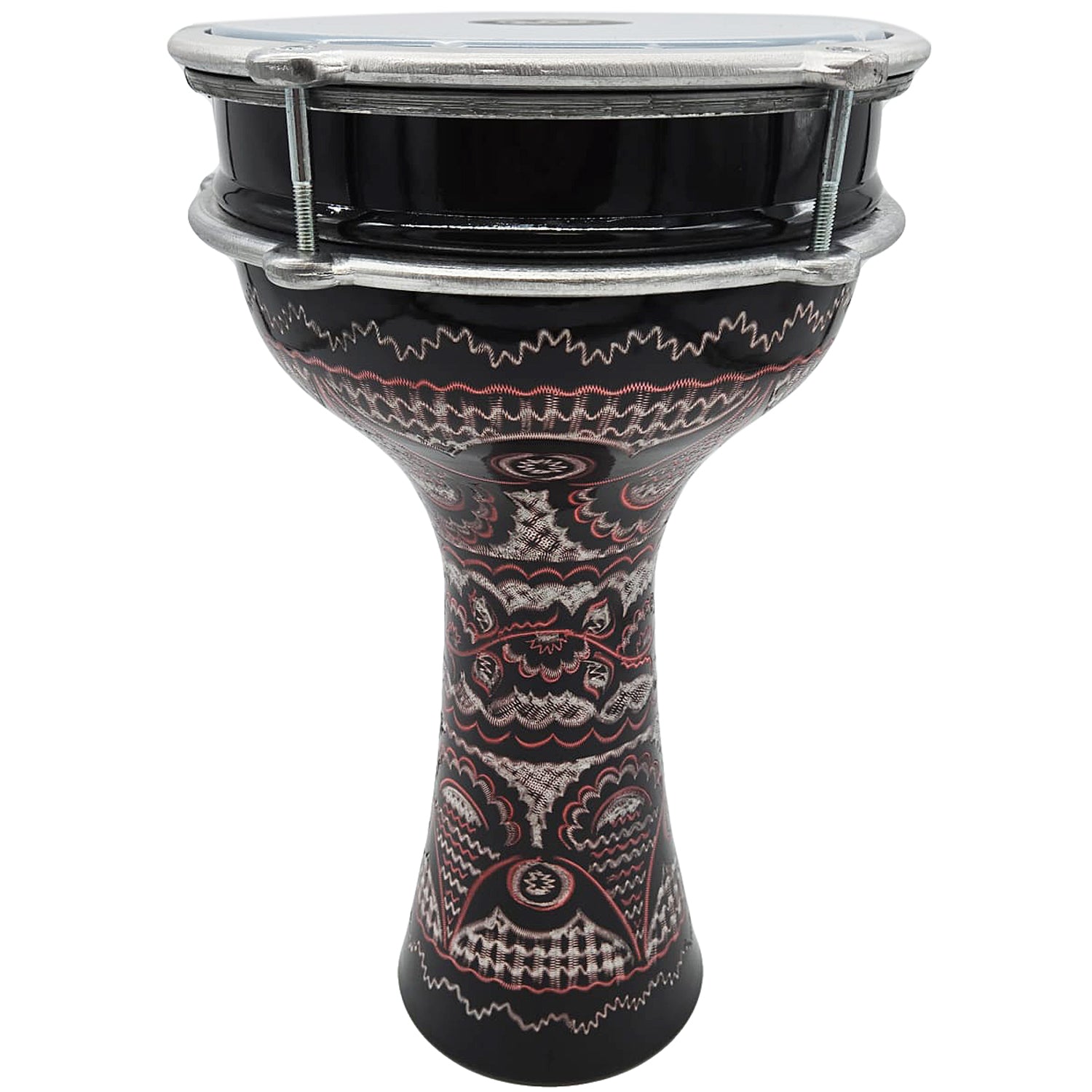 The Zaza Percussion- 16'' Black Engraved Aluminum Darbuka Doumbek