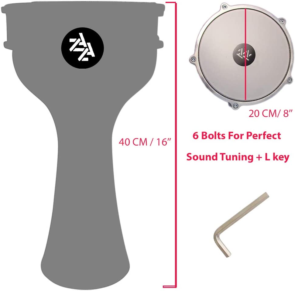 The Zaza Percussion 16" Doumbek is crafted with the vision of perfecting the doumbek sound while combining uncompromising style, quality materials, and affordability. Designed from lightweight aluminum (just around 2 lbs), it is easy to carry—making it ideal for beginners of any age, while also serving as an excellent addition to any professional drummer’s collection.