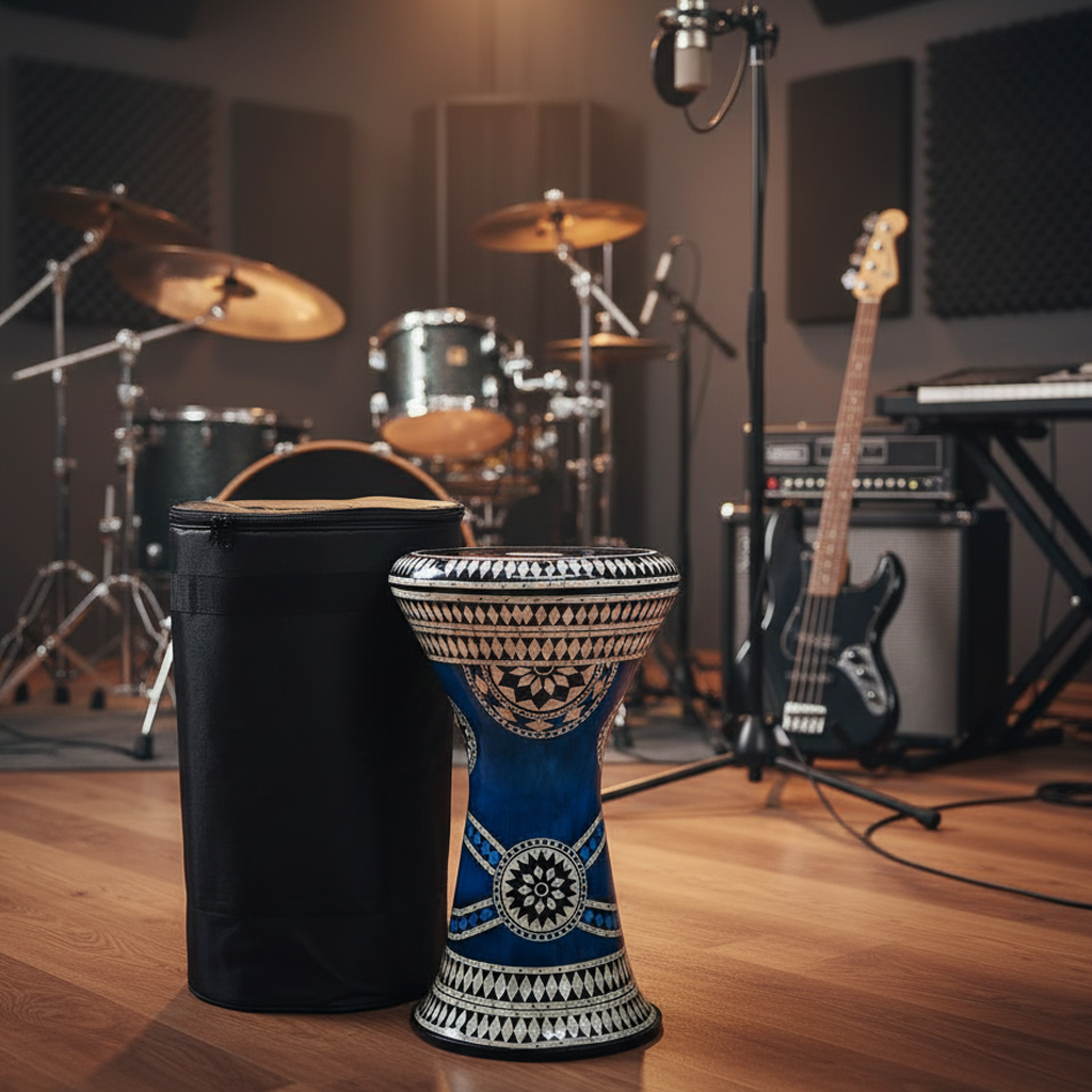 The 18 '' Sombaty Horizon Zaza Percussion Egyptian Style Sombaty Size Darbuka With 9'' Drum Head (Liquid Blue-9'')