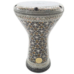 Meticulously handcrafted with outstanding precision and attention to detail, the New Generation 2.0 offers rich, captivating sound quality suitable for both professional performance and studio use. The drum features an intricate inlay of real mother of pearl arranged in a traditional Arabic pattern, highlighting its cultural heritage and artistic value. The exterior is fully covered with genuine mother of pearl, reflecting vibrant spectral colors that enhance its visual impact.