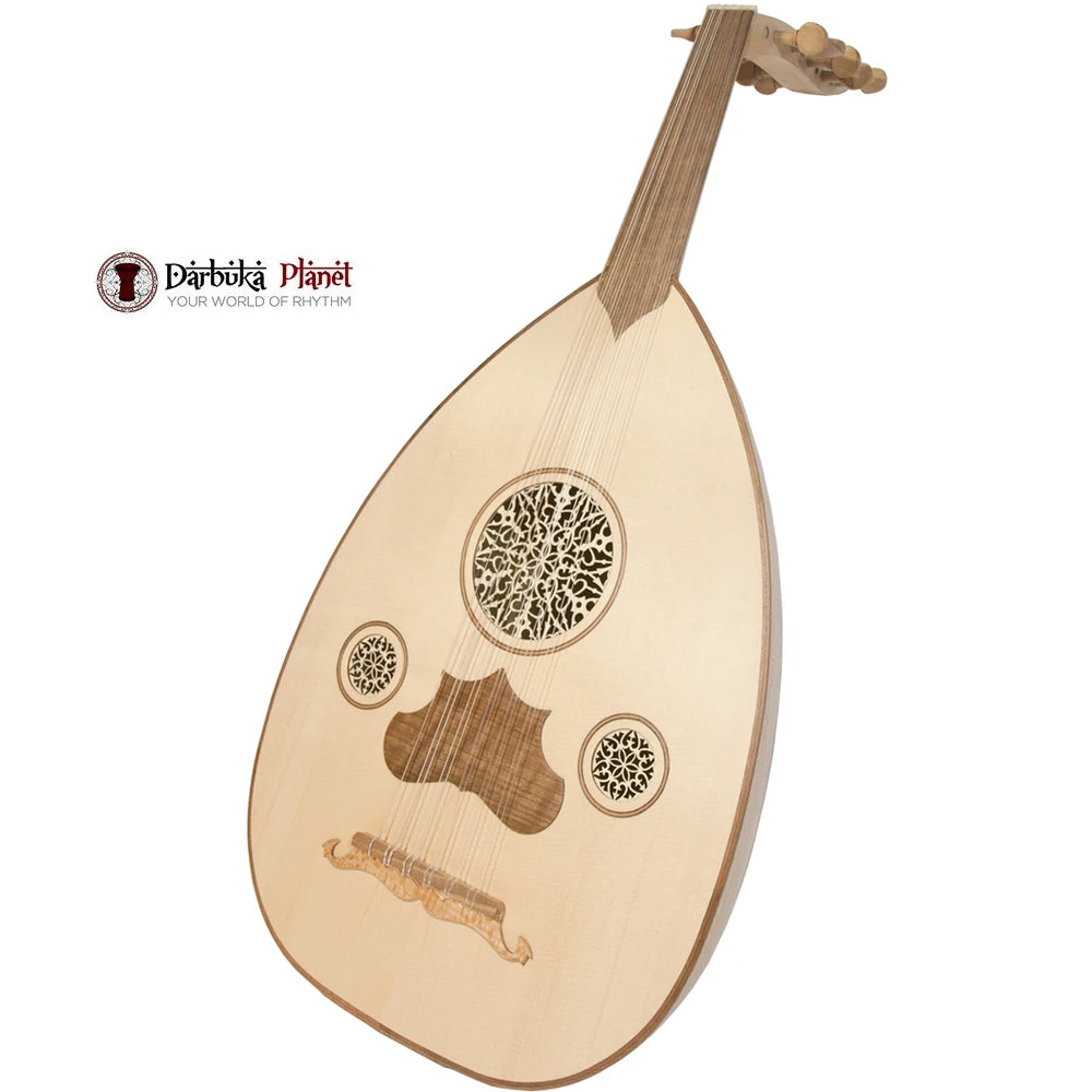 Turkish style oud with classic tear-drop shape and bowl bottom. The Turkish oud is played in traditional Turkish and Mediterranean music and is known for producing a powerful, resonating sound. This model features a walnut and lacewood body and walnut neck with a beautiful satin finish.
