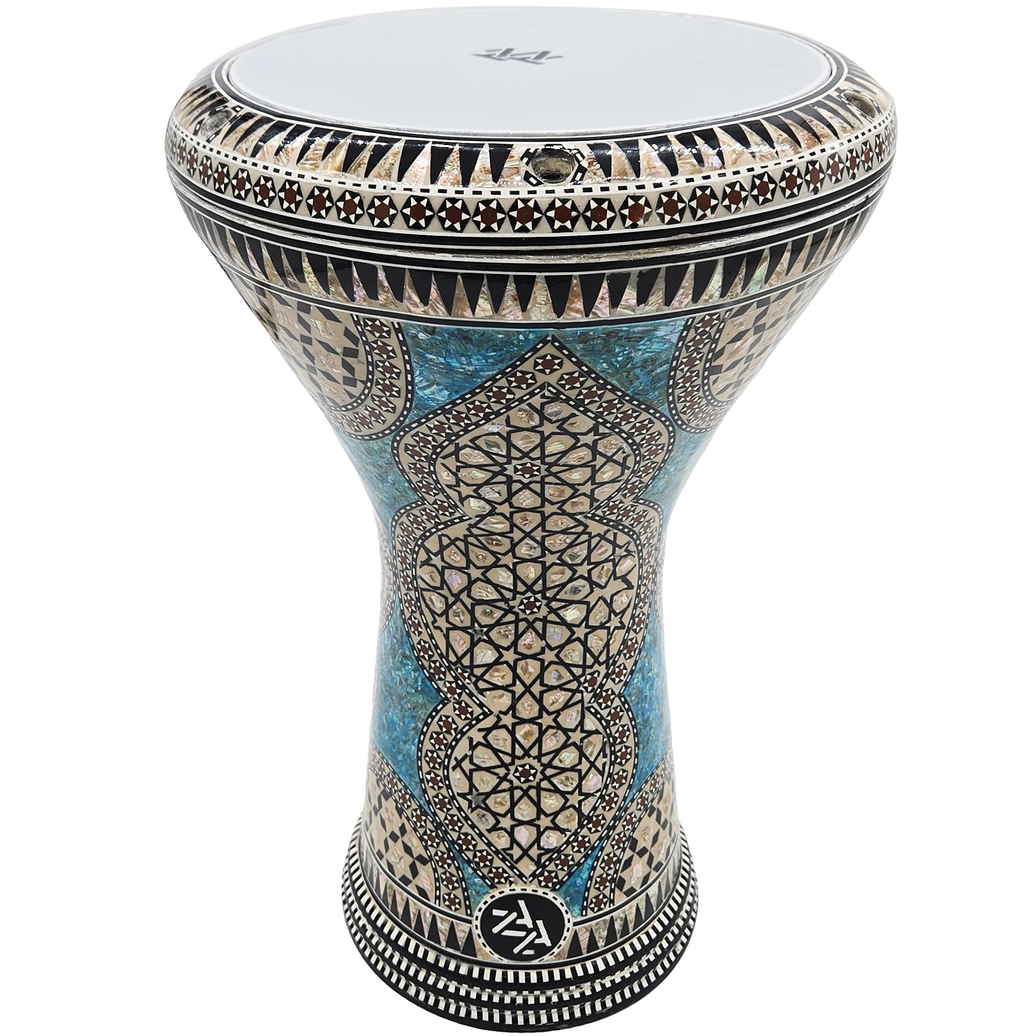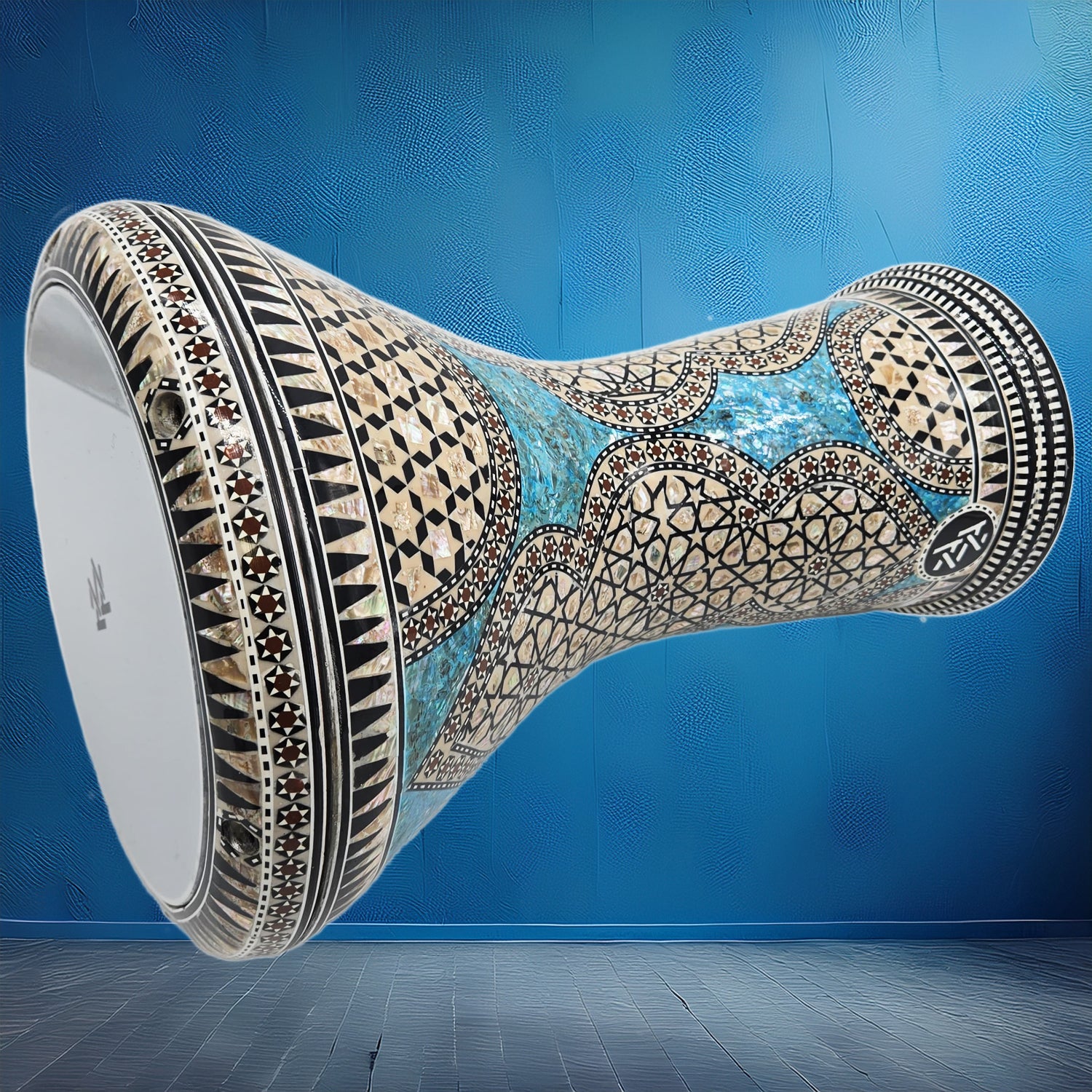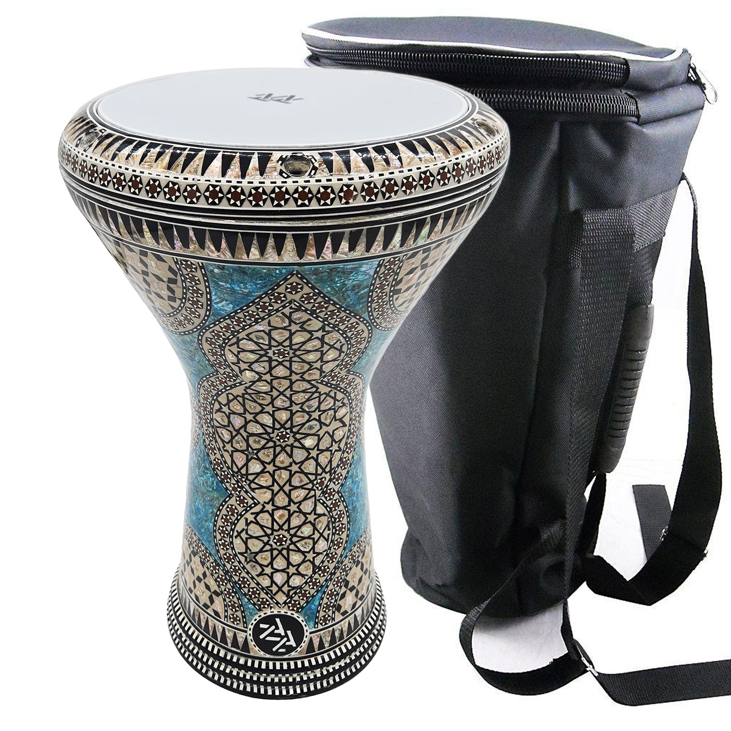 • This Drum is a Top-Quality Drum with Shiny Egyptian Shells Decorations. An amazing new 17" Darbuka, which comes with extra synthetic skin and a premium case.