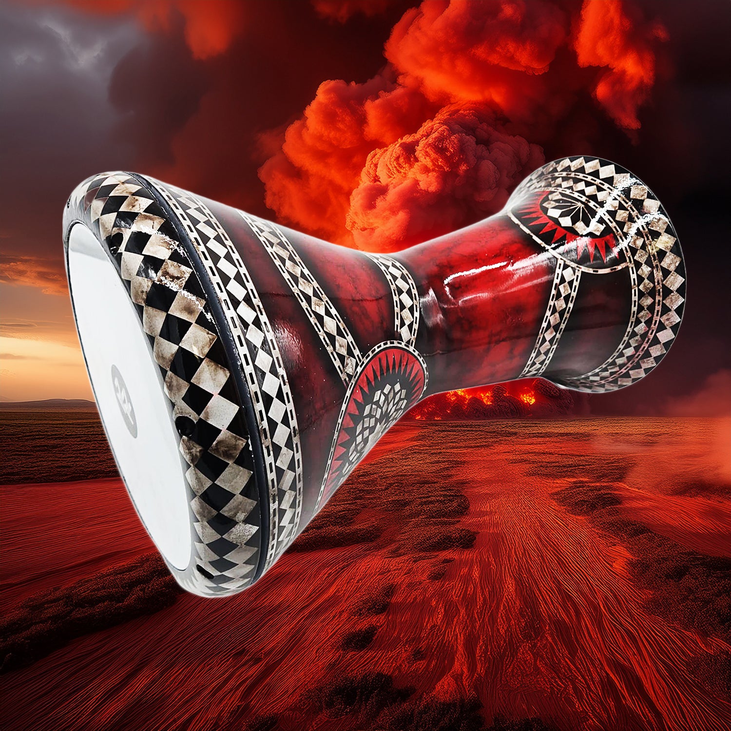 The 18'' Zaza Percussion Horizon Sombaty Size - Egypt Style Darbuka Doumbek - (Red Smoke -9'')