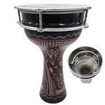 The Zaza Percussion- 16'' Red Wine Engraved Aluminum Darbuka Doumbek
