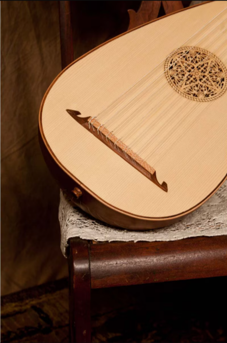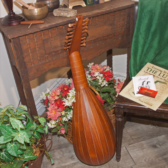 The sheesham travel lute has a body made of eleven solid sheesham staves, a sheesham neck and sheesham fingerboard. The peg box is solid sheesham attached at an angle of...