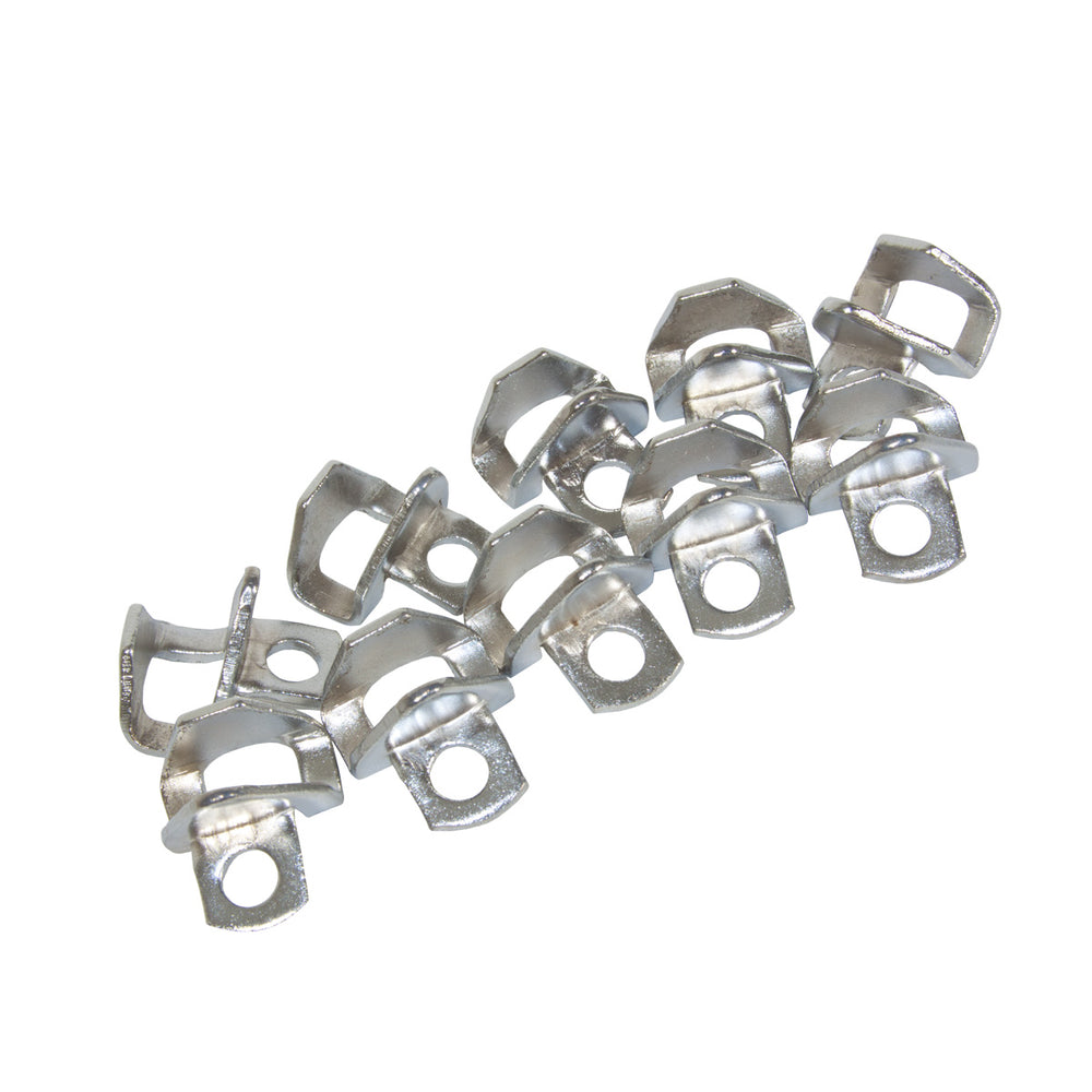 Pack of 10 bodhran outside tunable clips. Does not include bolts or nuts.