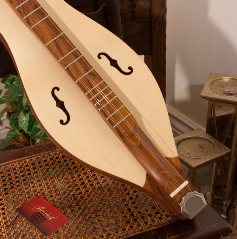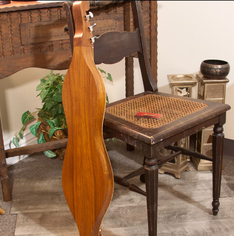 As one of our most recent additions to our Roosebeck Mountain Dulcimer line, this Grace model has many great features! Its vaulted fret board makes it lighter and as a result there is more soundboard vibration, producing excellent sound quality. It has an hour glass shape and its body, neck, nut, bridge and fret board are solid sheesham. Its tail piece has a silver color and is shaped like a crown. The soundboard is spruce and has a charming sheesham skirt design on both ends, as well as 4 of the classic f-hole openings. This model also features 5 mechanical geared right angle tuners with a 14:1 ratio and has five strings, including 2 melody strings, 2 middle strings and 1 bass drone string. Many tunings will work, but we recommend the traditional DAD method to make it easy to pick up and play. The following accessories are included with item: pick, noter and owner's guide.